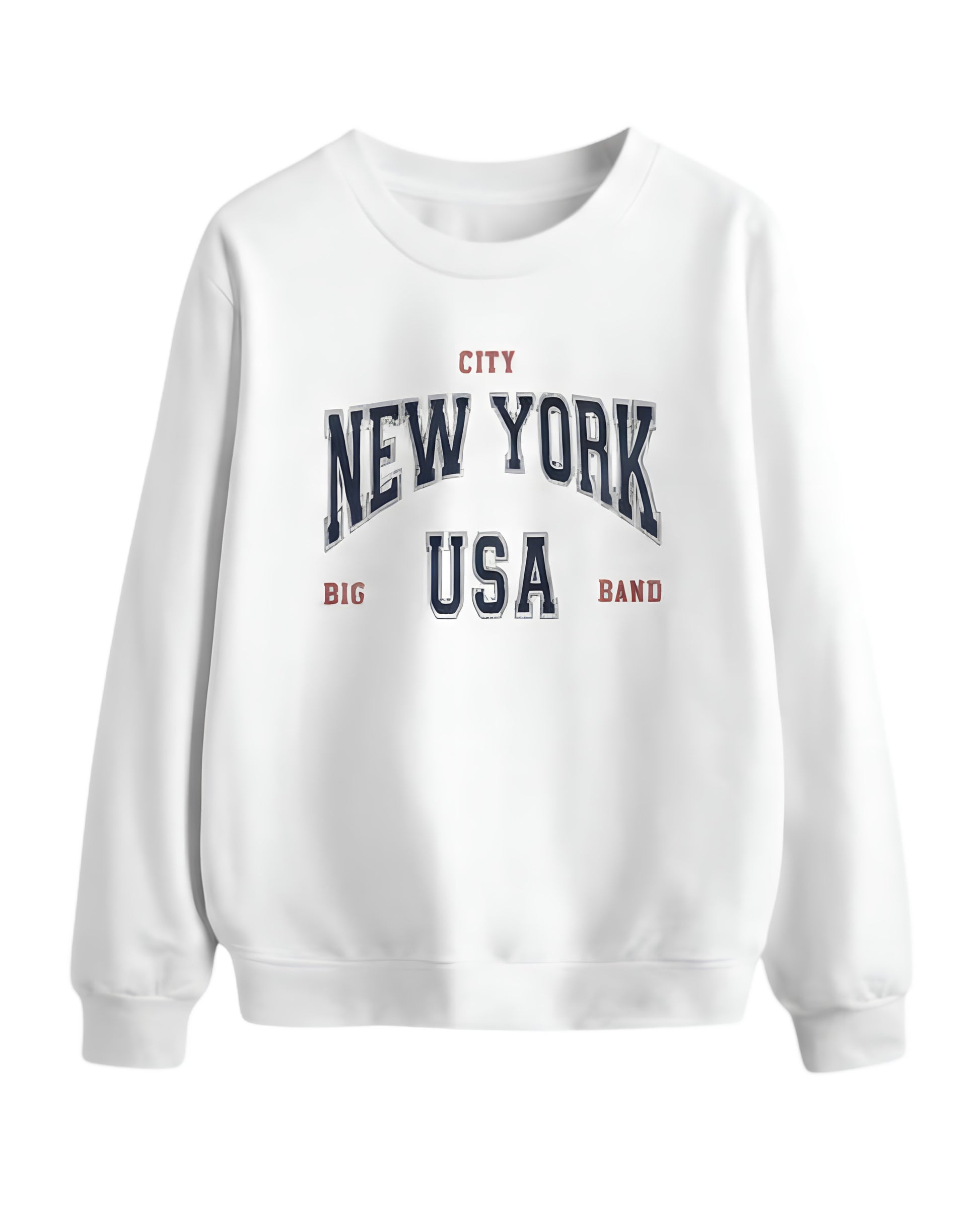 White New York USA Crewneck Sweatshirt – Comfortable, Stylish & Everyday Wear